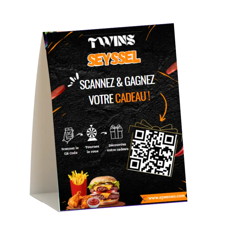 Grâce à ce support visuel attractif, offrez-leur la chance de tourner la roue et de remporter un cadeau, tout en renforçant l’engagement et l’interaction avec votre marque.