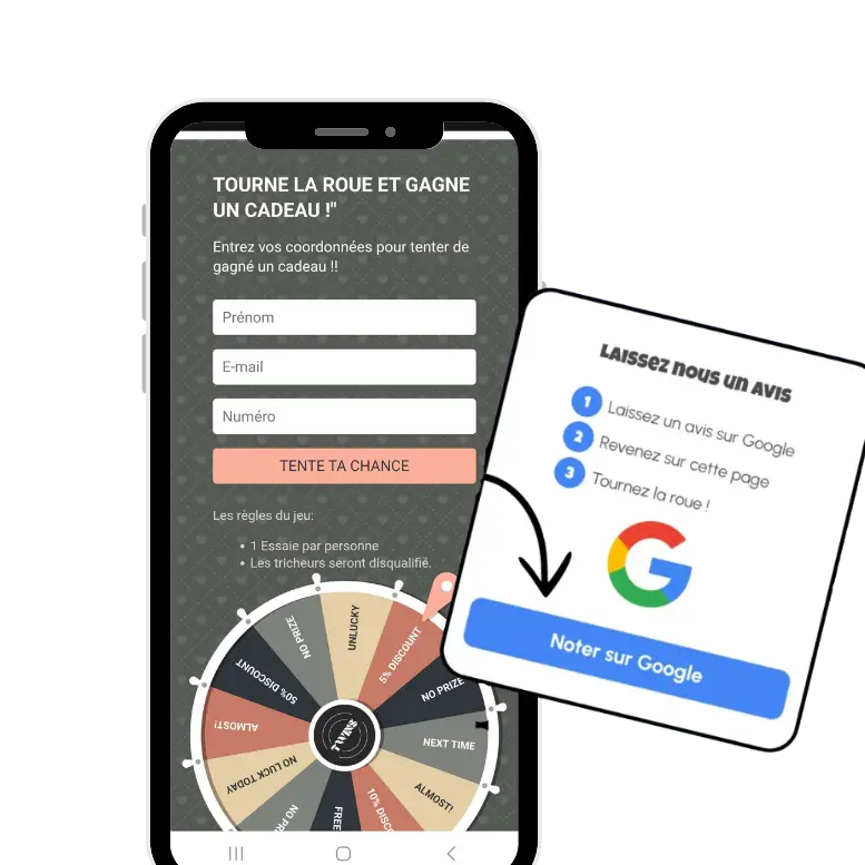 Avant de tenter leur chance pour remporter un cadeau, vos clients sont invités à laisser un avis sur Google.